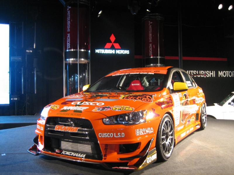 三菱のブースにあった、新型ランサーのD1マシーン。実際にランサーのシートに座ってみましたが、新型インプSTIより、カジュアルな感じで、(インプより内装が広い)毎日乗るんだったら、ランサーだなぁ~って、思いました。